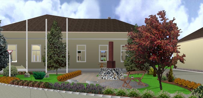 Önkormányzat kérésére készült el az alábbi kertterv, amely csak koncepcionális szinten kezeli és jeleníti meg a község főterét.